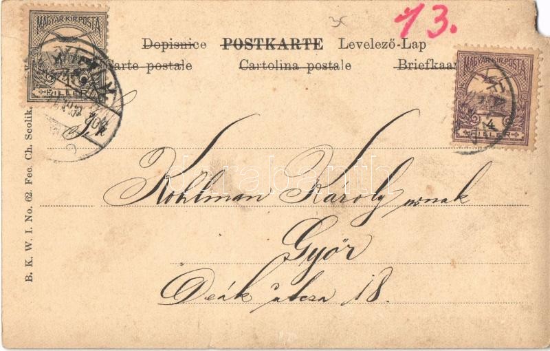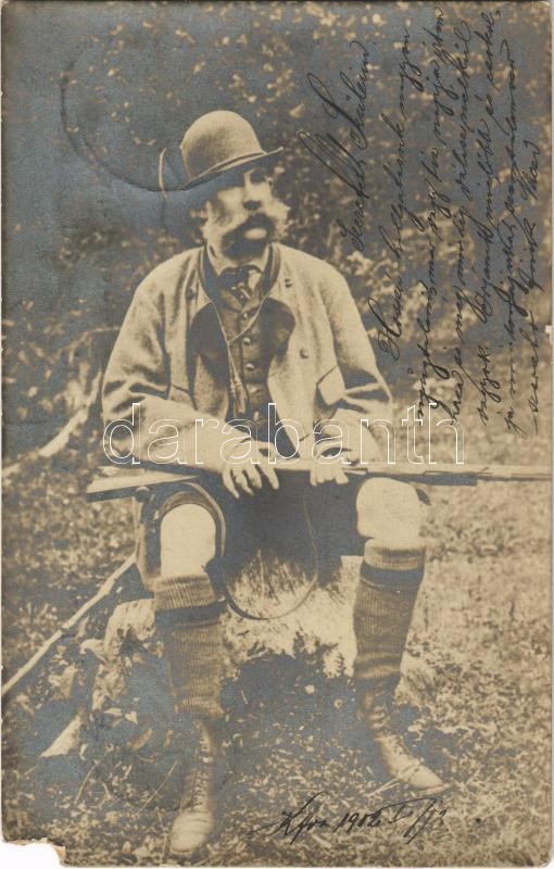 1902 I. Ferenc József vadász felszerelésben puskával / Franz Joseph I. / Franz Joseph in hunting outfit with a rifle. B.K.W.I. No. 62. Fec. Ch. Scolik (EM)