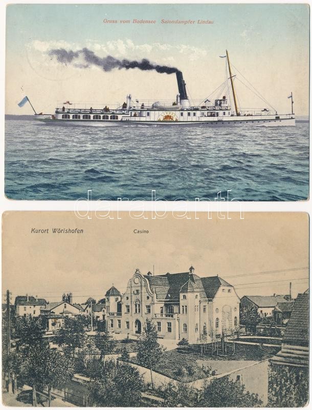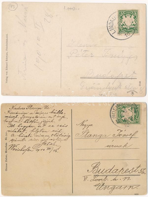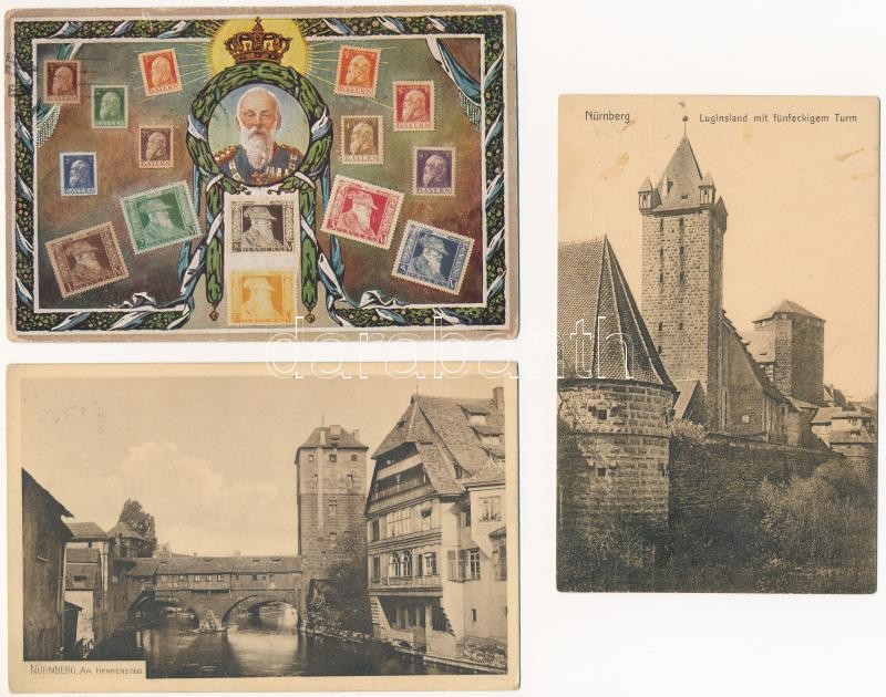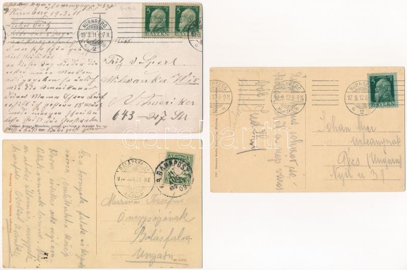 5 db RÉGI német képeslap 5 Pf bérmentesítéssel / 5 pre-1945 German postcards: Nürnberg, Kurort Wörishofen, Salondampfer Lindau, Luitpold, Prince Regent of Bavaria