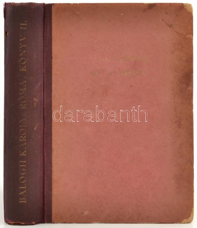 Leírás: Balogh Károly: Római könyv. II. kötet, Ianus. Bp., 1941, Királyi Magyar Egyetemi Nyomda. Kiadói félvászon kötés, kopottas állapotban.