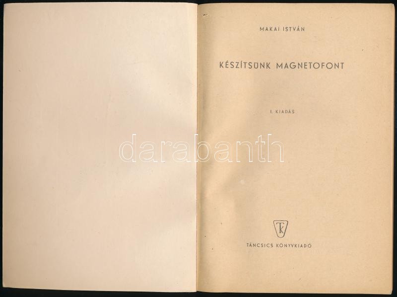 Makai István: Készítsünk magnetofont. Kis Technikus Könyvtár. Bp.,1960... https://www.darabanth.com/hu/363-Gyorsarveres/363.0/Konyvek/Konyvek-Technika~1000011/Makai-Istvan-Keszitsunk-magnetofont-Kis-Technikus-Konyvtar-Bp-1960-Tancsics-Kiadoi-pap~II2079994