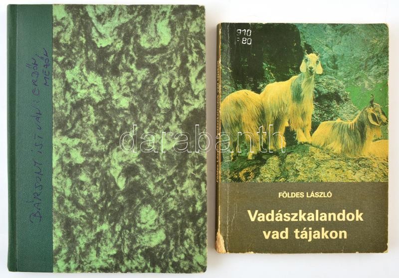 Bársony István: Erdőn, mezőn. Vadásztörténetek. Vál., szerk., és az utószót írta: Véber Károly. Bp., 1962, Móra. Átkötött félvászon-kötés, volt könyvtári példány.+ Földes László: Vadászkalandok vad tájakon. Bp.,1987., Népszava. Kiadói papírkötés, kissé kopott borítóval, kissé sérült gerinccel, volt könyvtári példány.