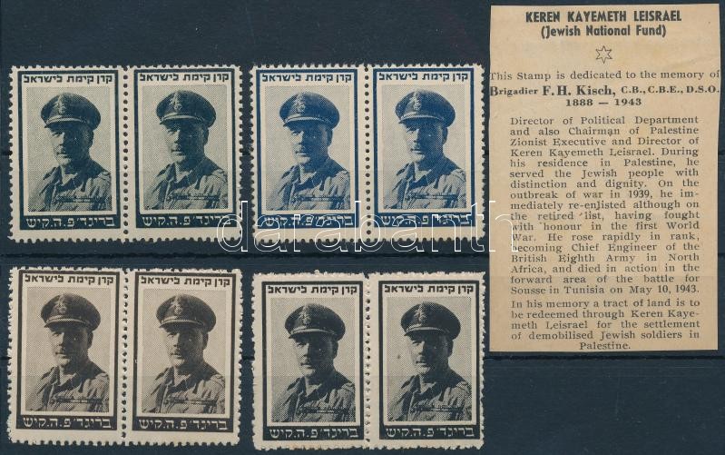 Leírás: Izrael KKL 1943 F. H. Kisch emlékére kiadott 4 db levélzáró pár különböző színekben