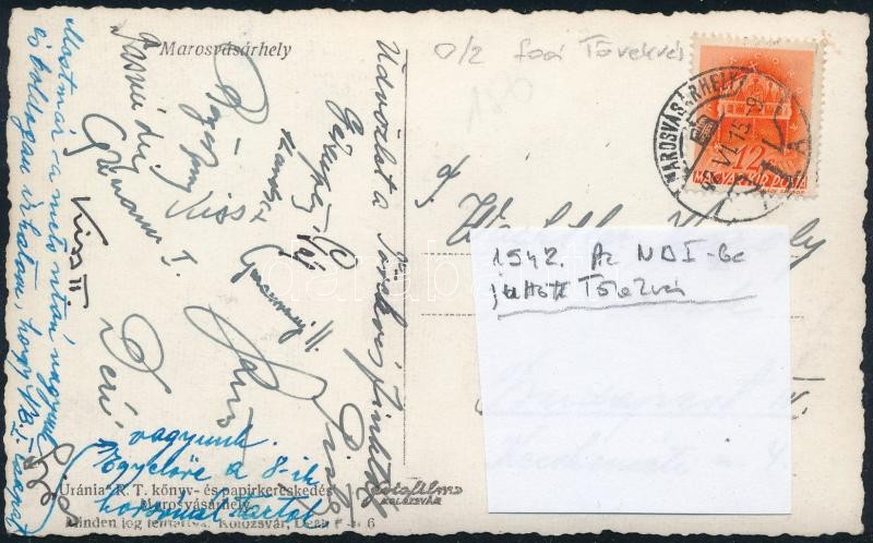 Leírás: 1942 Az NB 1-be jutott Törekvés játékosainak aláírásai Marosvásárhelyről küldött levelezőlapon