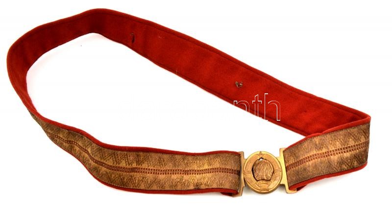 Leírás: 1943 Jugoszlávia, díszes textil öv, réz övcsattal, h: 98 cm
