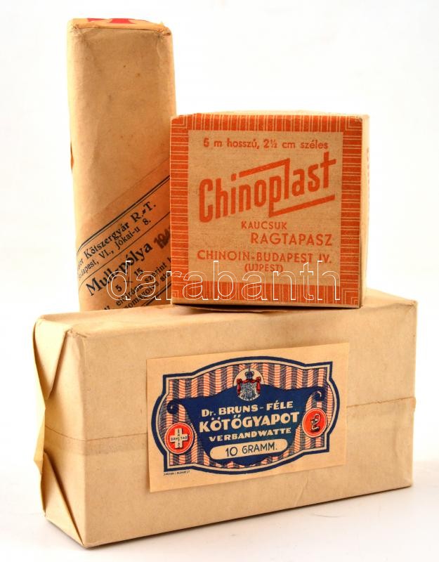 3 db régi kötszer, eredeti csomagolásában (dr. Bruns-féle kötőgyapot, ... https://www.darabanth.com/hu/363-Gyorsarveres/363.0/Mutargy-papirregiseg-egyeb/Bolhapiac~500012/3-db-regi-kotszer-eredeti-csomagolasaban-dr-Bruns-fele-kotogyapot-Chinoplast-stb~II2100907