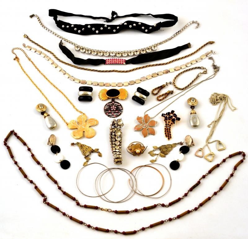 Leírás: Vegyes dekoratív bizsu tétel, nyakláncok, brossok, stb., 20 db