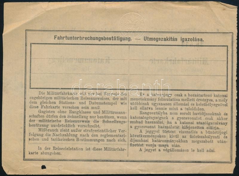 Leírás: 1907 Cs. kir. szab. déli vaspálya-társaság katonamenetjegy