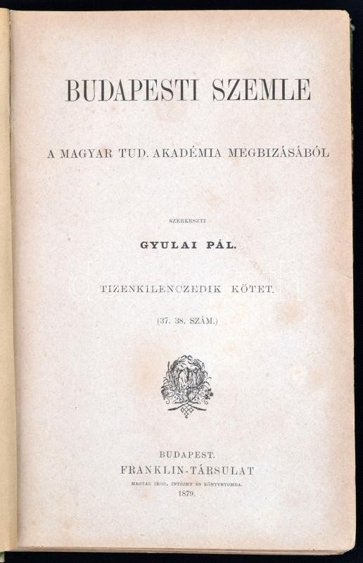 Leírás: 1879 Budapesti Szemle. 19. kötet. (37.,38. szám.) Szerk.: Gyulai Pál. Bp.,1879, Franklin-Társulat, 4+4 64 p. Kopott, foltos félvászon-kötésben.