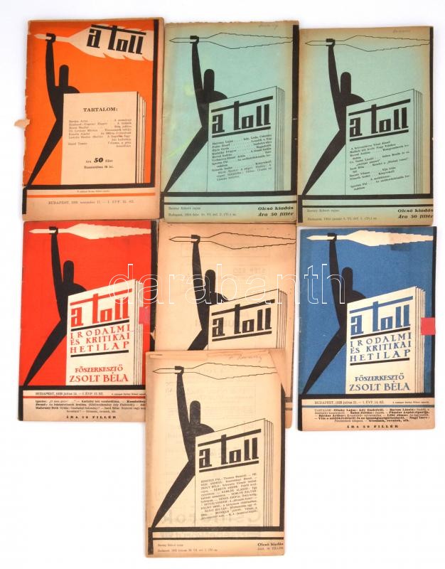 1929-1937 A Toll című folyóirat 7 db száma https://www.darabanth.com/hu/363-Gyorsarveres/363.0/Mutargy-papirregiseg-egyeb/Nyomtatvanyok~500030/1929-1937-A-Toll-cimu-folyoirat-7-db-szama~II2098104