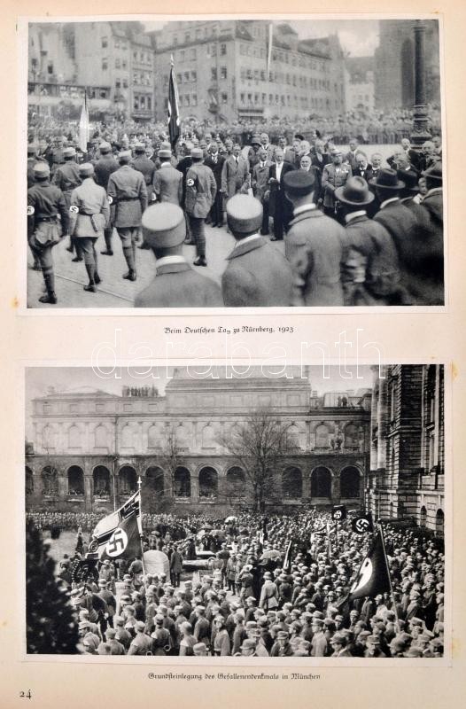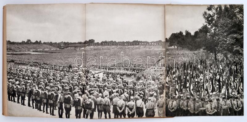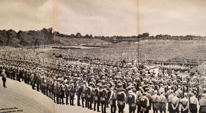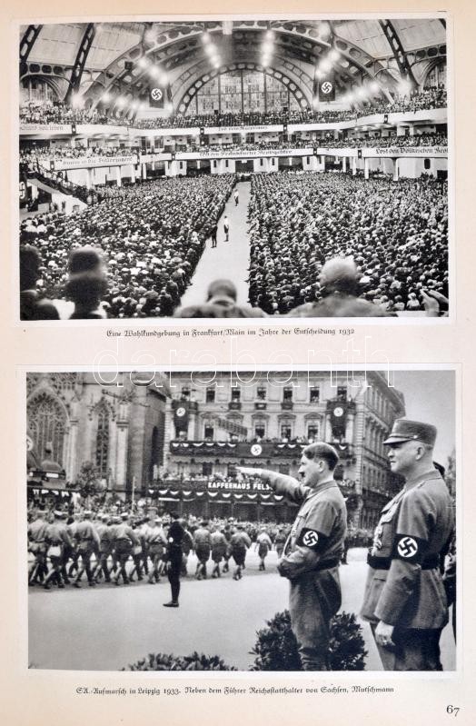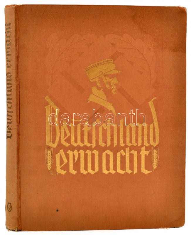1933 Deutschland erwacht gyűjtőalbum Hitler hatalomra kerülésének történetét ábrázoló cigarettacímkékkel. Komplett, 200 címkével. Egészvászon kötésben, hátán folttal / Collecting pictures in album about Hitler's route to power. Complete. Stain on the back