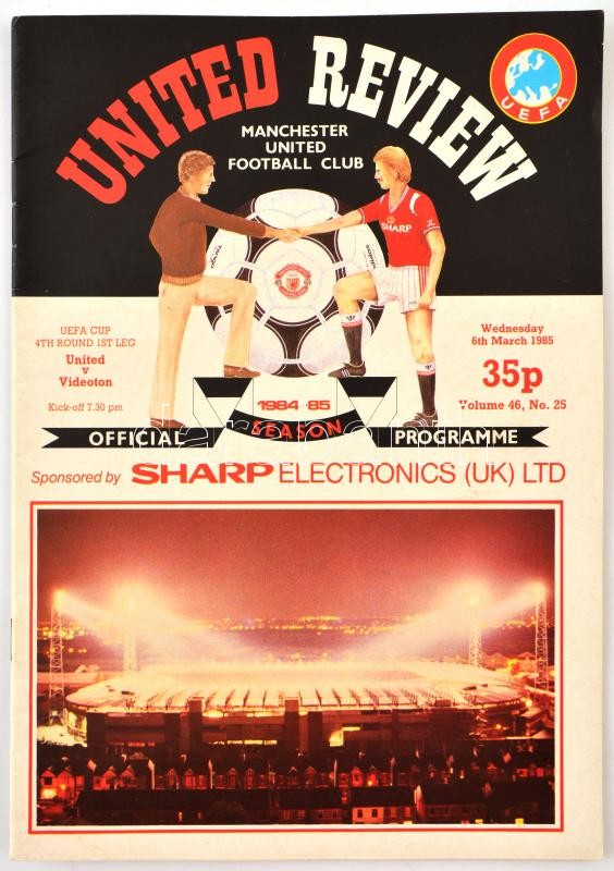 Leírás: 1985 Manchester United vs. Videoton labdarúgó mérkőzés képes meccsfüzete / Football match booklet 24 p.