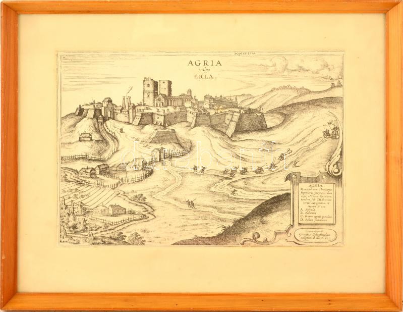 Leírás: Eger atik rézmetszet modern facsimiléje. ismeretlen mester műve, ,,communicavit Georgius Houfnaglius" 35x26 cm üvegezett keretben