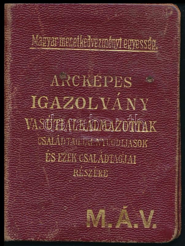 1941 Bp., MÁV arcképes igazolvány vasúti alkalmazottak részére https://www.darabanth.com/hu/363-Gyorsarveres/363.0/Mutargy-papirregiseg-egyeb/Okmanyok~500018/1941-Bp-MAV-arckepes-igazolvany-vasuti-alkalmazottak-reszere~II2096499