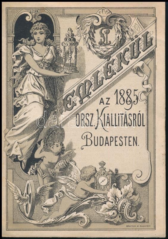 1885 Bp., Emlékül az 1885 Országos Kiállításról,/Lechner József óra-raktára, Bp., Deutsch M. Műv. Int.-ny., kihajtható, illusztrált nyomtatvány, Lechner József üzletének kirakatának illusztrációjával, 16x11 cm, kihajtva: 16x23 cm