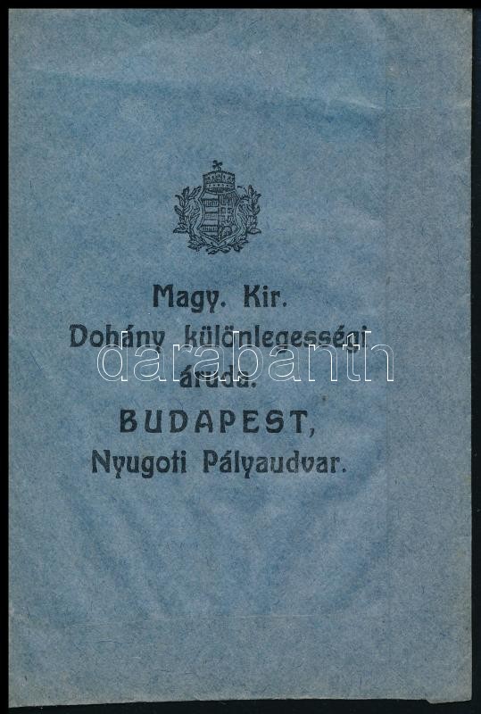 Leírás: cca 1910 Bp., M. Kir. Dohánykülönlegességi Áruda tasakja