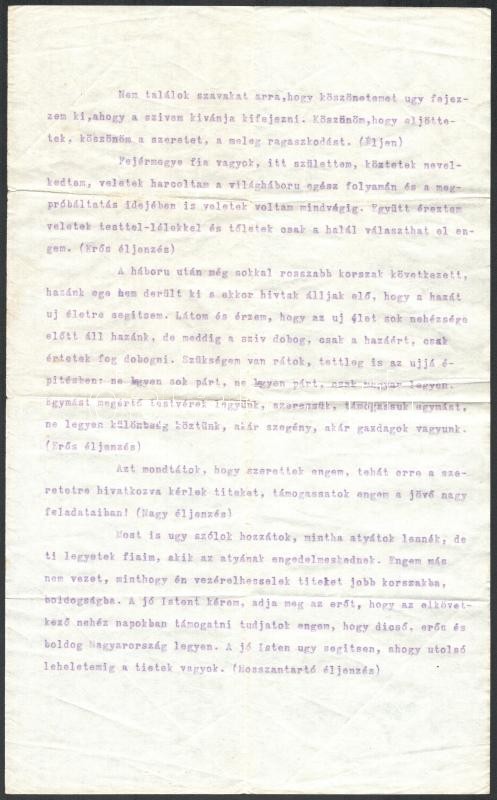 Leírás: 1919 József főherceg (1872-1962) beszédének gépelt változata