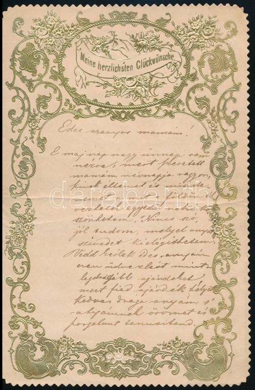cca 1900 Dombornyomott aranyozott, díszes levél https://www.darabanth.com/hu/363-Gyorsarveres/363.0/Mutargy-papirregiseg-egyeb/Tortenelmi-dokumentumok-keziratok-erdekessegek~500019/cca-1900-Dombornyomott-aranyozott-diszes-level~II2098042