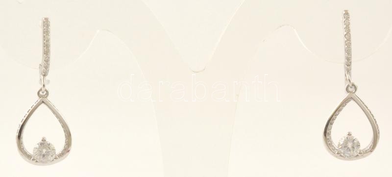 Leírás: Ezüst(Ag) apró kövekkel díszített csepp alakú fülbevalópár, jelzés nélkül, bruttó: 3,1 g