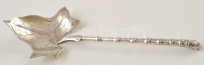 Leírás: Ezüst(Ag) leveles díszkanál, jelzett, h: 14,3 cm, nettó: 23 g