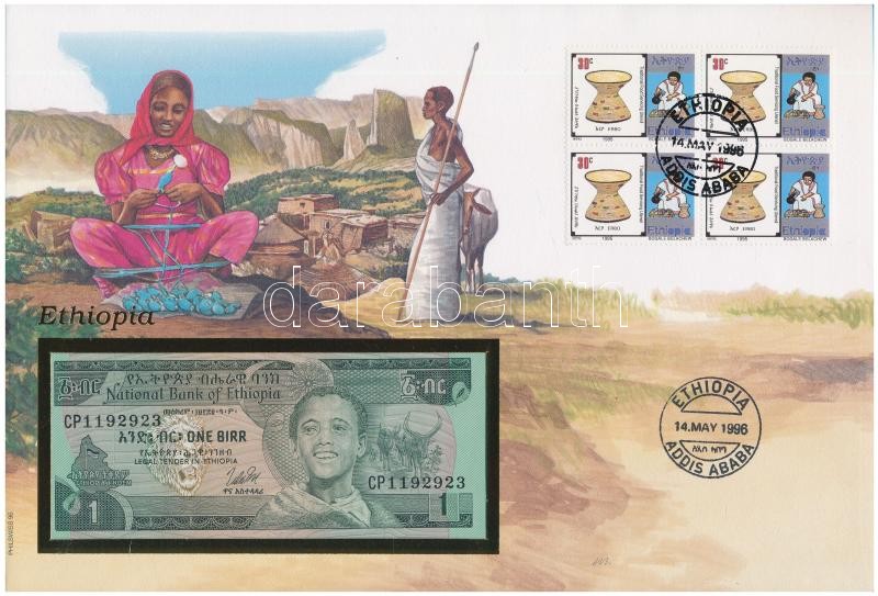 Leírás: Etiópia 1976. 1B, felbélyegzett borítékban, bélyegzéssel T:1 Ethiopia 1976. 1 Birr in envelope with stamp and cancellation C:UNC