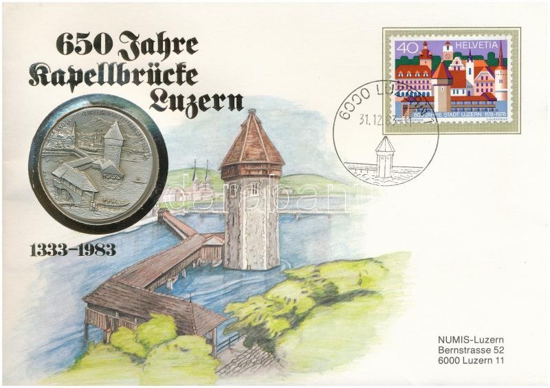 Svájc 1983. "650 Jahre Kapellbrücke Luzern 1333-1983" jelzet... https://www.darabanth.com/hu/363-Gyorsarveres/363.0/Numizmatika/Ermes-es-bankjegyes-boritekok~2000004/Svajc-1983-650-Jahre-Kapellbrucke-Luzern-1333-1983-jelzett-Ag-0900-emlekerem-felbelyegzet~II2053398