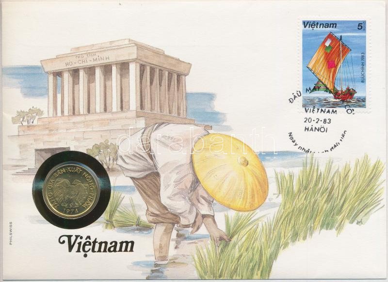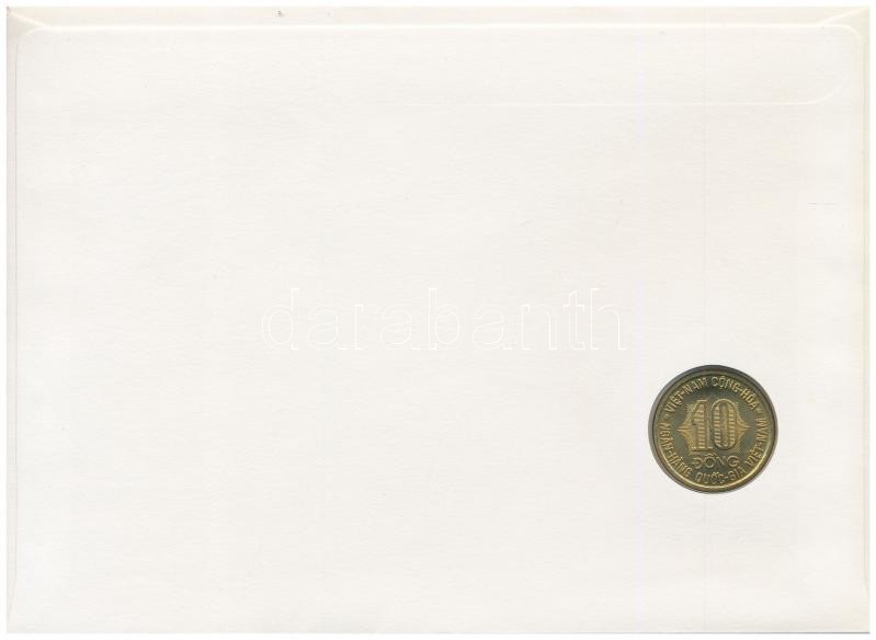 Vietnám 1974. 10D, felbélyegzett borítékban, bélyegzéssel, német nyelvű leírással T:1 Vietnam 1974. 10 Dong in envelope with stamp and cancellation, with German description C:UNC