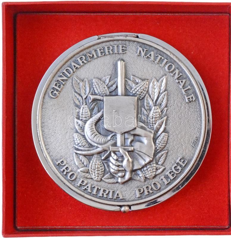 Leírás: Francia DN "GENDARMERIE NATIONALE PRO PATRIA PRO LEGE" ezüstözött szelence, "FIA" gyártói jelzéssel, eredeti tokban (79mm) T:1
