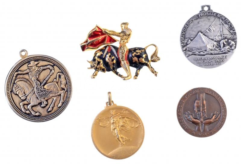 Vegyes 5db-os olasz és spanyol emlékérem és medál tétel T:1-,2 egyiken kopott festés