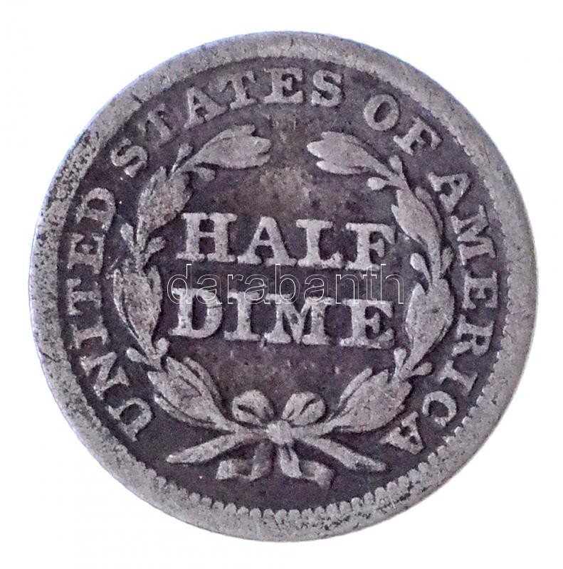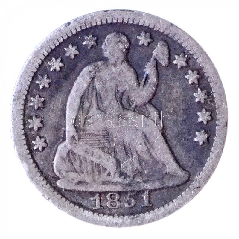 USA 1851. 1/2 ... https://www.darabanth.com/hu/363-Gyorsarveres/363.0/Numizmatika/Kulfoldi-fem-es-ezustpenzek~2000014/Amerikai-Egyesult-Allamok-1851-12d-Ag-1-38g-T2-3-USA-1851-12-Dime-Ag-1-38g-CVF-F--Kra~II2096267