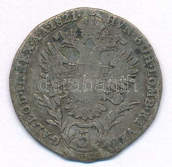 Austria 1821A 5 Kreuz... https://www.darabanth.com/hu/363-Gyorsarveres/363.0/Numizmatika/Kulfoldi-fem-es-ezustpenzek~2000014/Ausztria-1821A-5kr-Ag-I-Ferenc-T3-Austria-1821A-5-Kreuzer-Ag-Franz-I-CF~II2097719