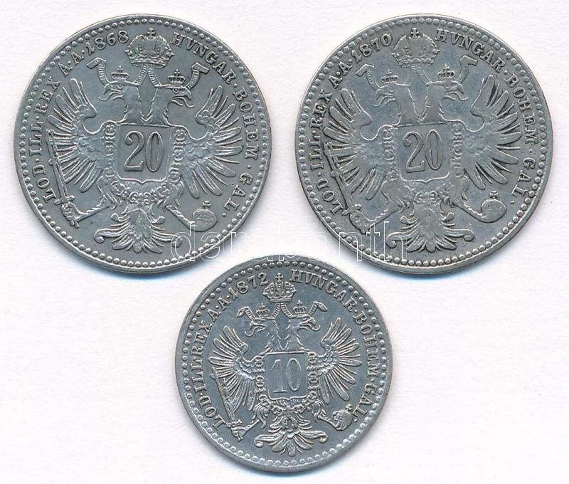 Leírás: Ausztria 1868. 20kr Ag + 1870. 20kr Ag + 1872. 10kr Ag T:2,2-