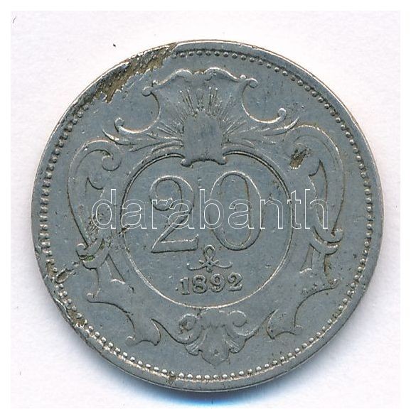 Leírás: Ausztria 1892. 20h Ni T:2- ph.