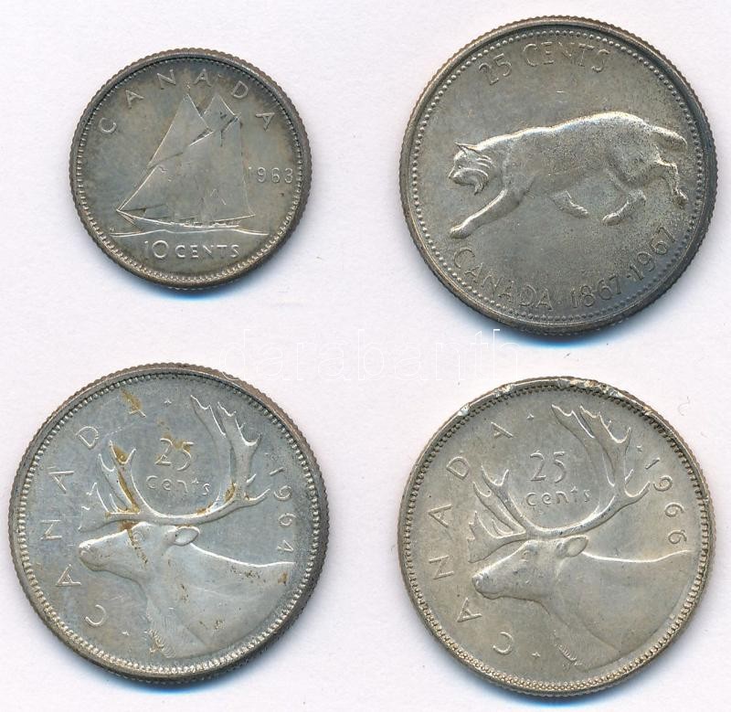 Canada 1963. 10 Cents Ag + 1964-1966. 25 Cents Ag (2xdiff) + 1967. 25 Cents Ag C:XF edge error