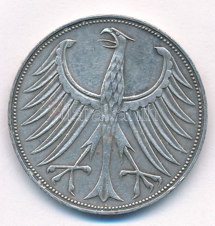 Krause KM#112.1 https://www.darabanth.com/hu/363-Gyorsarveres/363.0/Numizmatika/Kulfoldi-fem-es-ezustpenzek~2000014/NSZK-1967D-5M-Ag-T2-2--FRG-1967D-5-Mark-Ag-CXF-VF-Krause-KM231121~II2064339