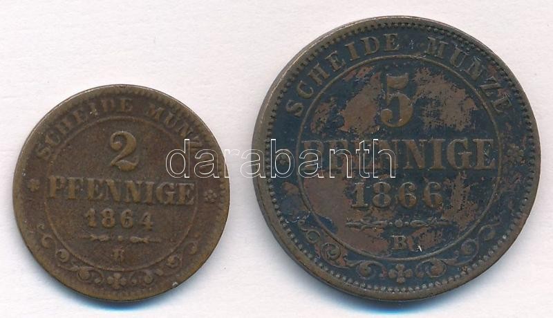 Német Államok / Szászország-Albertine 1864B 2pf Cu + 1866B 5pf Cu T:2,2-