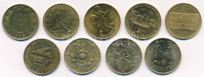 Olaszország 1979-1999. 200L (9xklf) egy kivételével forgalmi emlékkiadások T:1,1-