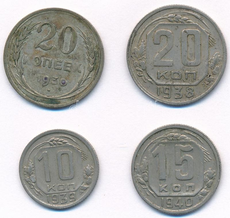 Soviet Union 1930-1940. 10 Kopeks - 20 Kopeks (4xdiff) including 1930. 20 Kopeks Ag C:XF,VF