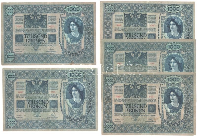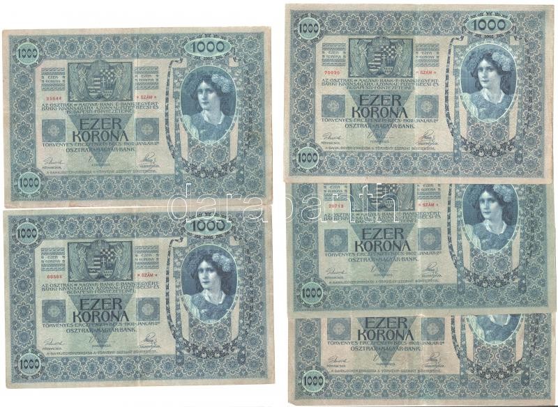 Vegyes: 1902. 1000K (5x) + Lengyelország 1919. 1000M + 1920. 5000M T:I... https://www.darabanth.com/hu/363-Gyorsarveres/363.0/Numizmatika/Magyar-bankjegyek~2000007/Vegyes-1902-1000K-5x-plus-Lengyelorszag-1919-1000M-plus-1920-5000M-TIII-III--Mixed-Hungary-1902~II2095566