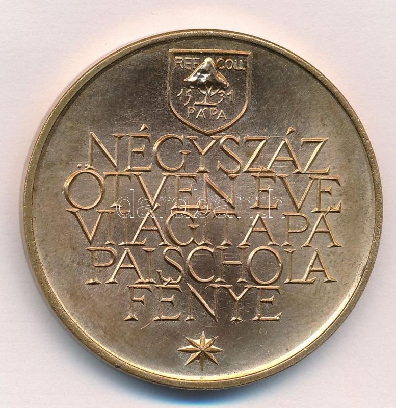 Leírás: 1981. "A Magyar Éremgyűjtők Egyesülete / Négyszázötven éve világít a pápai Schola fénye" Br emlékérem (42,5mm) T:1