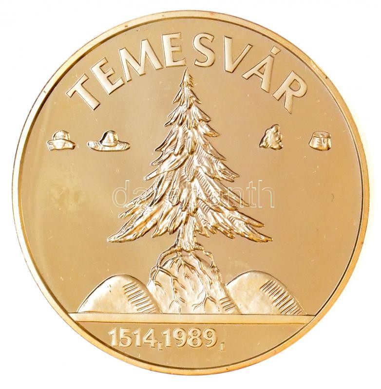 Leírás: 1989. "Temesvár 1514,1989 / Ne hagyd el Erdélyt, Erdélyt Istenem" aranyozott fém emlékérem (65mm) T:1 (eredetileg PP), ph.