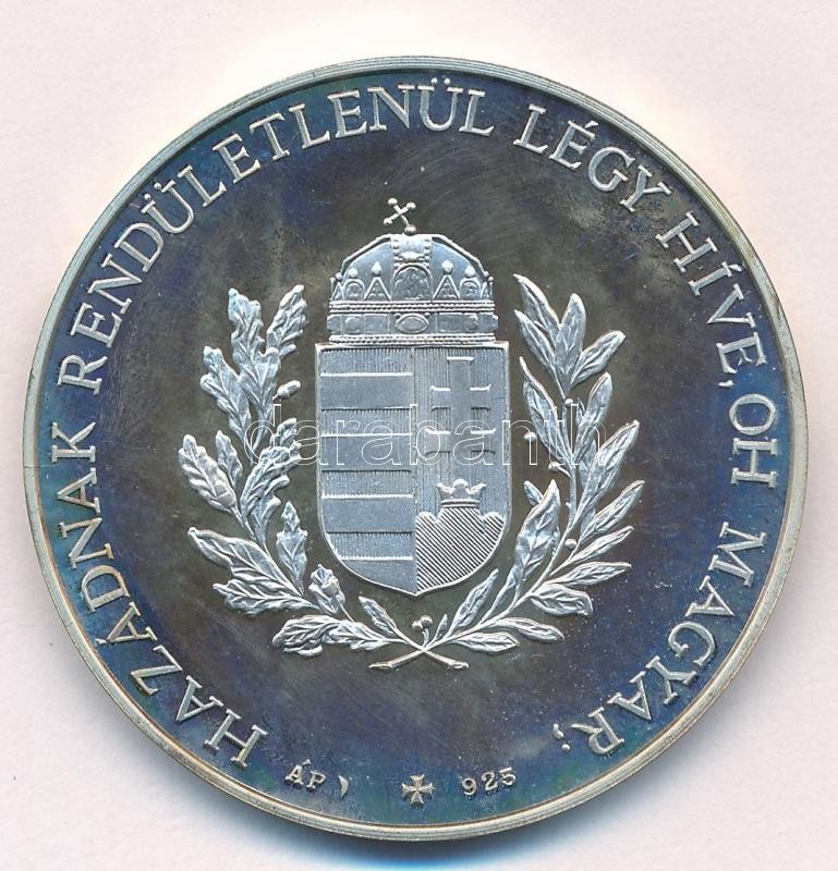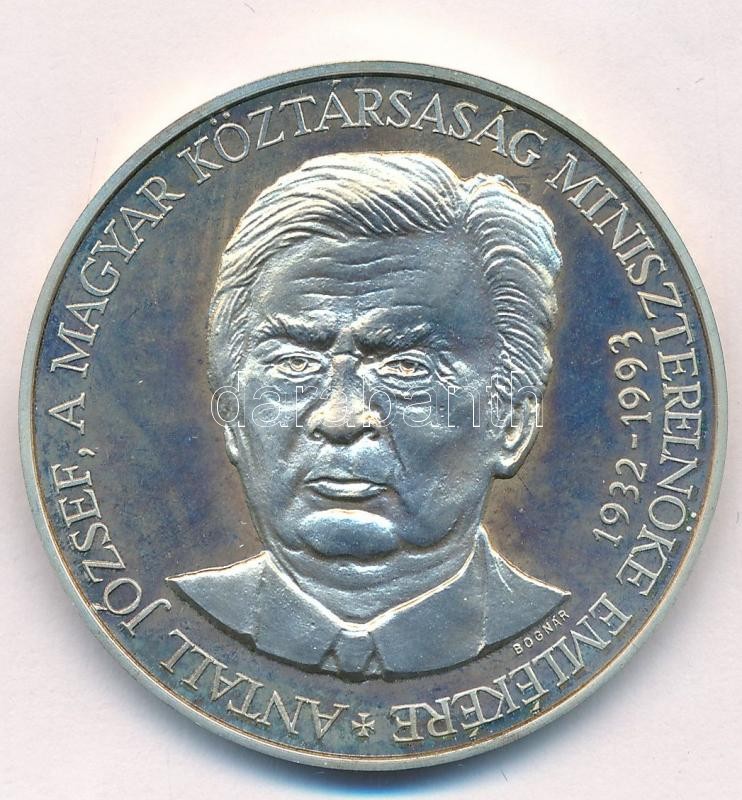 Bognár György (1944-) 1993. "Antall József, A Magyar Köztársaság miniszterelnöke 1932-1993 / Hazádnak rendületlenül légy híve, oh magyar" Ag emlékérem dísztokban (31,26g/0.925/42,5mm) T:1- (PP) kis patina