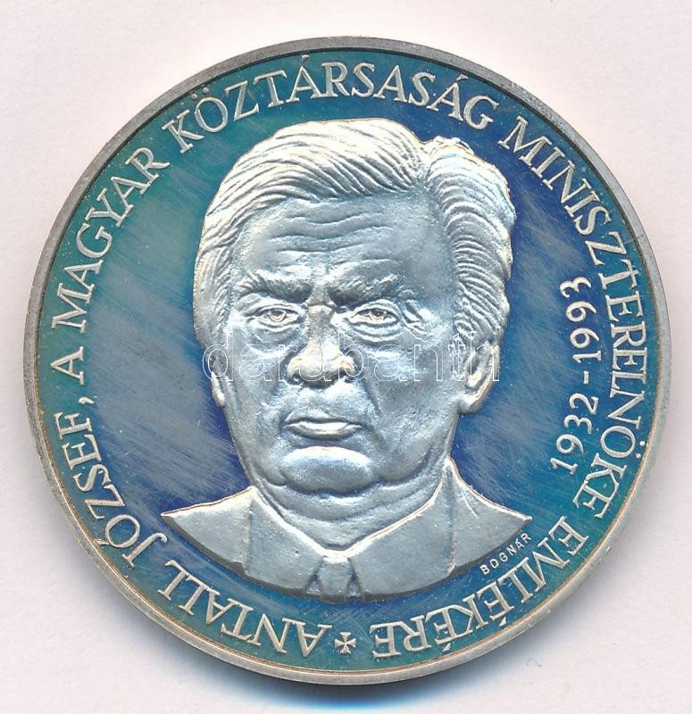 Bognár György (1944-) 1993. "Antall József, A Magyar Köztársaság miniszterelnöke 1932-1993 / Hazádnak rendületlenül légy híve, oh magyar" Ag emlékérem dísztokban (31,33g/0.925/42,5mm) T:1- (PP) kis patina