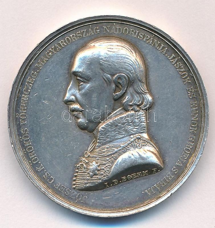 Josef Daniel Boehm (1794-1865) 1845. "JÓZSEF CS. K. ÖRÖKÖS FŐHERCZEG. MAGYARORSZÁG NÁDORISPÁNJA. JÁSZOK ÉS KUNOK GRÓFJA S BÍRÁJA. / A JÁSZ KUN HÁRMAS KERÜLET VÁLTSÁGA SZÁZADOS ÜNNEPÉN FÉLSZÁZADOS GRÓFJA S BÍRÁJA HÁLÁS TISZTELETÉRE 1845." Ag emlékérem (17,57g/33mm) T:1- ph.