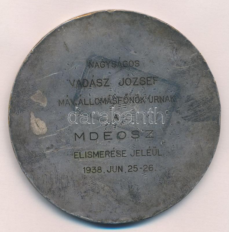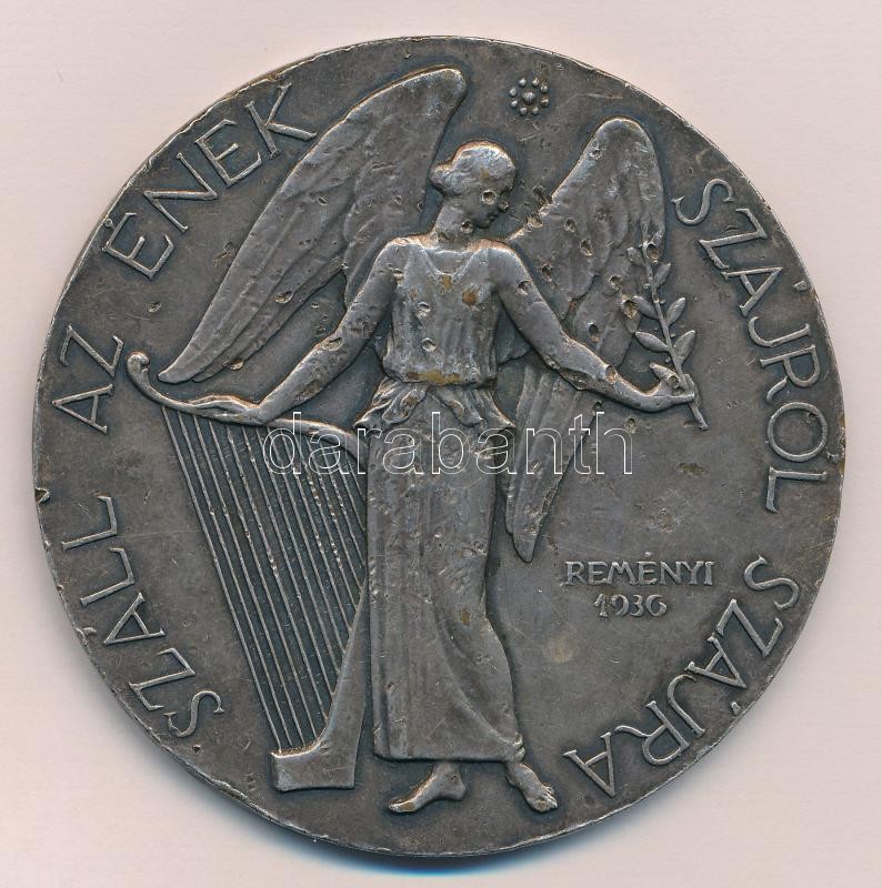 Leírás: Reményi József (1887-1977) 1938. "Száll az Ének Szájról Szájra / Nagyságos Vadász József MÁV állomásfőnök úrnak - MDEOSZ elismerése jeléül 1938. jun. 25-26." ezüstözött Br emlékérem" (70mm) T:2 kopás, ph.