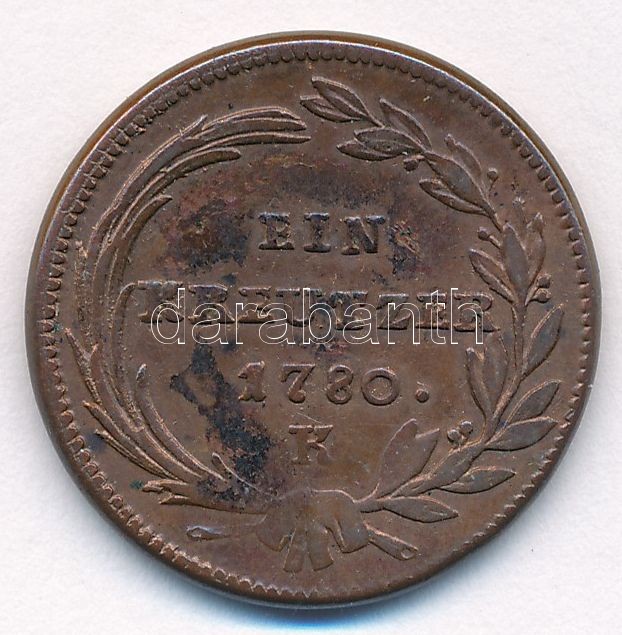 1780K 1kr Cu "Mária Terézia" T:2- https://www.darabanth.com/hu/363-Gyorsarveres/363.0/Numizmatika/Magyar-es-magyar-verdejelu-fem-es-ezustpenzek~2000008/1780K-1kr-Cu-Maria-Terezia-T2-~II2097790