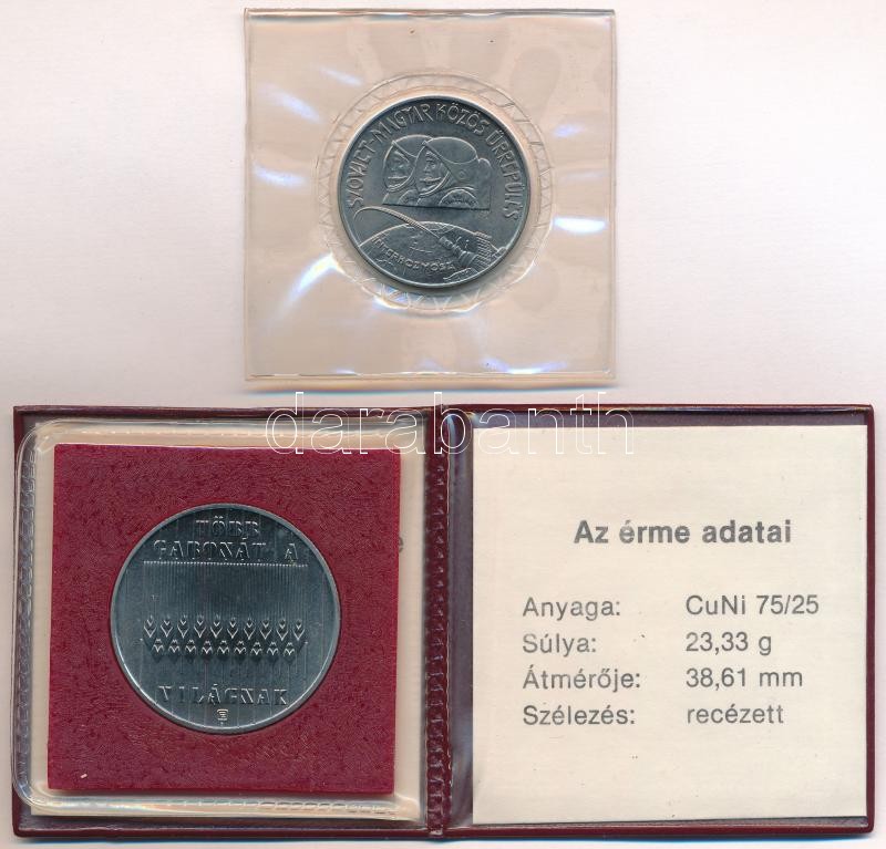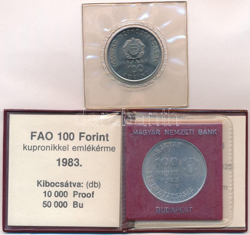 1980. 100Ft Ni "Szovjet-magyar közös űrrepülés" műanyag fóliában + 1983. 100ft Cu-Ni "FAO-SOROZAT II. - Több gabonát a világnak" tokban, tanúsítvánnyal T:BU