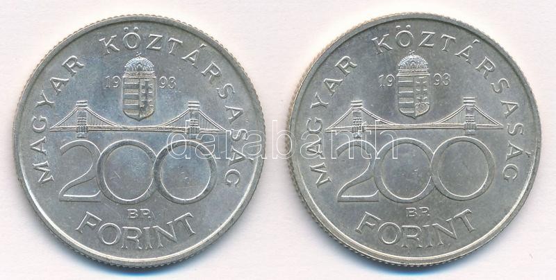 Leírás: 1993. 200 Ft Ag "MNB" (2x) T:2 patina