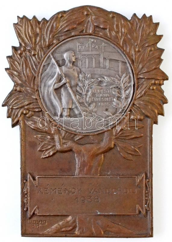 Leírás: 1938. "Újpesti Torna Egyesület 1885" Br sportplakett ezüstözött fém betéttel, "KÉMÉNDY VÁNDORDÍJ 1938" gravírozással, "LUDVIG BP" gyártói jelzéssel (86x62mm) T:1-