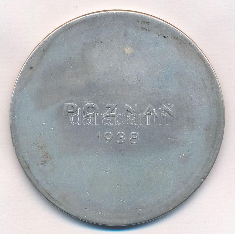 Lengyelország 1938. "WEGRY POLSKA - MECZ WIOSLARSKI / POZNAN 1938" a magyar-lengyel úszó bajnokság zománcbetétes, jelzett Ag sport díjéreme (65,24g/0.800/54mm) T:2