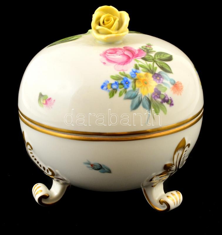Leírás: Herendi bonbonier, kézzel festett, jelzett, apró kopásnyomokkal, m:12,5 cm, d:10,5 cm